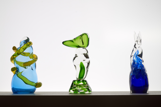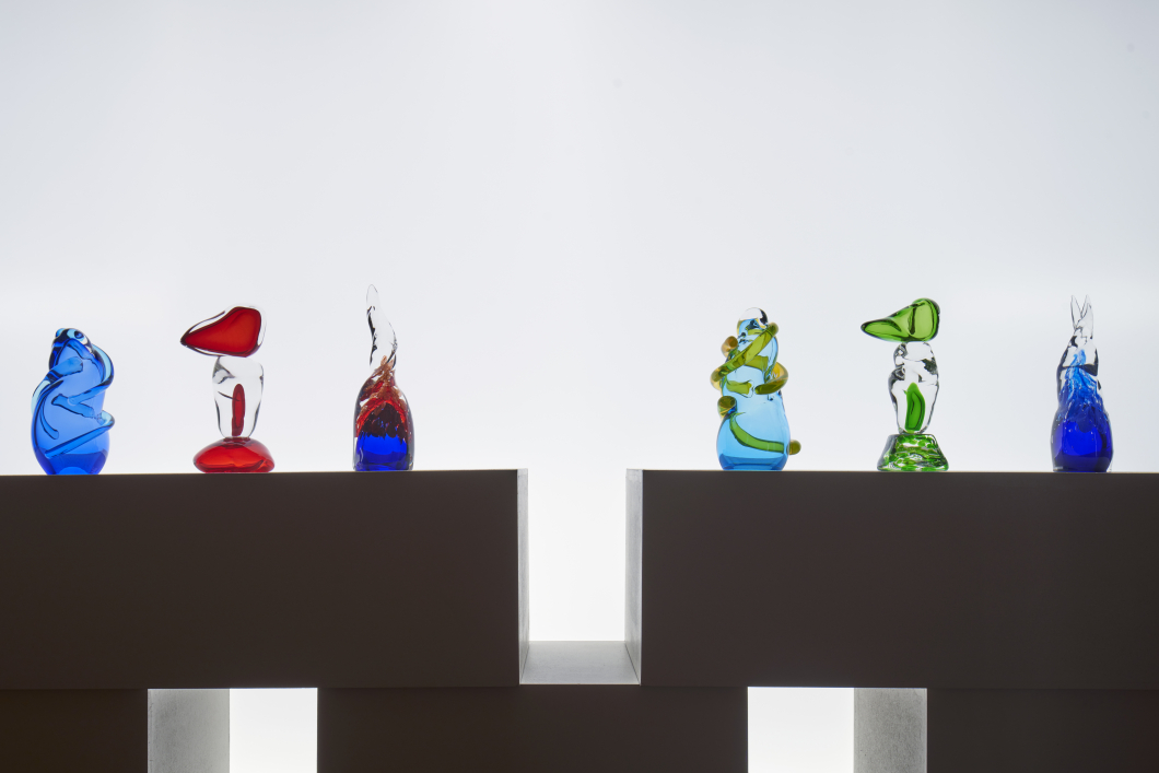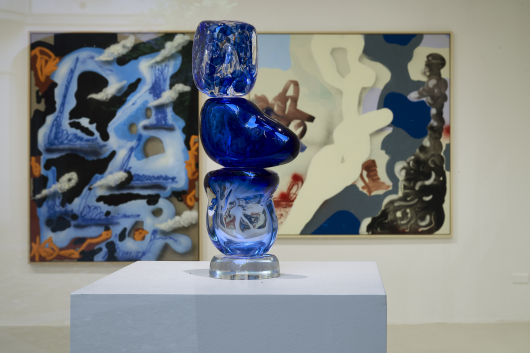 La residenza che abbiamo pianificato comprendeva sia una produzione di tele che un dialogo tra la tradizione del vetro finlandese e quella veneziana. Abbiamo costruito un ponte tra Seguso Vetri d’Arte, a Murano, e la vetreria Lasismi a Rijimaki. La mostra INVISIBLE IDENTITY presenta 30 sculture in vetro soffiato realizzate a quattro mani tra l’artista ed i maestri vetrai, ora esposte a Villa Levi Terrachini a Reggio Emila, poco distante dallo SpazioC21 e visitabile fino al 15 dicembre 2025.